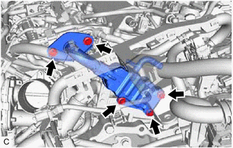 | (b) Remove the 5 bolts and EGR cooler assembly from the cylinder head sub-assembly and EGR valve assembly. |