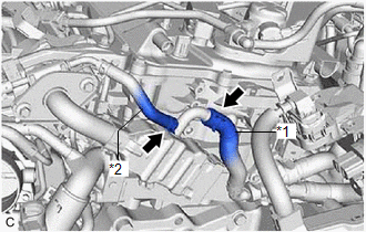 | (a) Slide the 2 clips and disconnect the No. 3 water by-pass hose and No. 4 water by-pass hose from the EGR cooler assembly. |