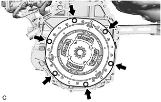 | (c) Remove the 6 bolts and transmission input damper assembly from the flywheel sub-assembly. |