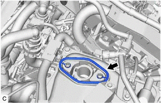 | (c) Using an 8 mm socket wrench, remove the 2 bolts (A) and separate the No. 2 water by-pass pipe from the intake manifold. |