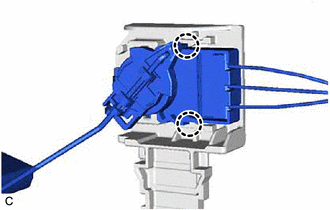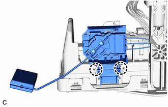| (4) Disengage the 2 claws to remove the fuel sender gauge assembly from the fuel gauge bracket. |
