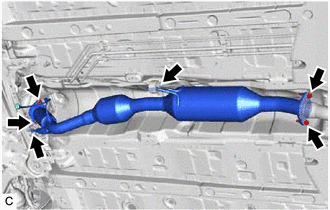 (b) Remove the No. 1 upper front floor heat insulator, No. 1 exhaust manifold heat insulator and exhaust manifold (TWC: Front Catalyst).