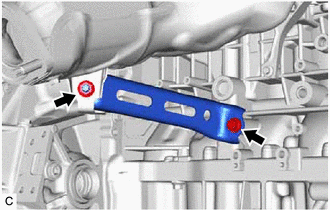 | (a) Remove the bolt, nut and manifold stay from the exhaust manifold (TWC: Front Catalyst) and cylinder block sub-assembly. |