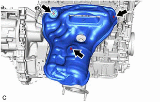 | (b) Type B: (1) Remove the 3 bolts and No. 2 exhaust manifold heat insulator from the exhaust manifold. |