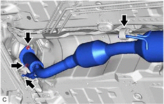 | (a) Remove the 2 bolts and disconnect the center exhaust pipe assembly from the front exhaust pipe assembly (TWC: Rear Catalyst). |