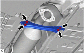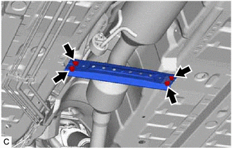 | (a) Remove the 4 bolts and center floor crossmember brace from the vehicle body. |