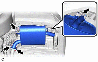 (b) Remove the center exhaust pipe assembly from the 2 exhaust pipe supports.