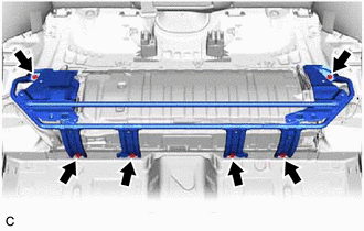 (b) Disengage the claw, 3 clips (B), 2 clips (C) and guide to remove the rear under side cover LH.