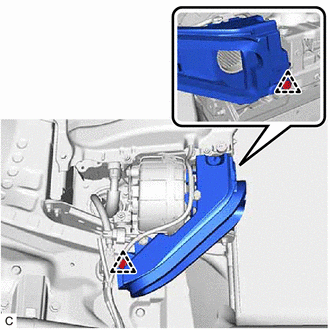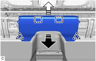 (b) Disengage the claw, 3 clips (B), 2 clips (C) and guide to remove the rear under side cover RH.