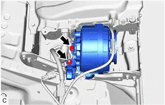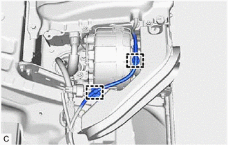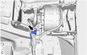 | (a) Disconnect the battery cooling blower assembly connector. |