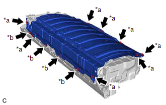 | (a) Remove the 8 bolts, 4 nuts and upper HV battery cover sub-assembly from the HV battery. |