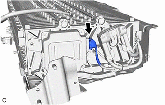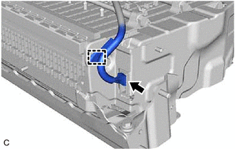 | (a) Disconnect the battery voltage sensor connector. NOTICE: Insulate each disconnected high-voltage connector with insulating tape. Wrap the connector from the wire harness side to the end of the connector. |