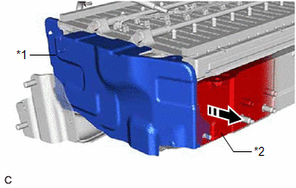 (d) Pull back the rear No. 1 HV battery shield and remove the No. 1 HV battery shield panel from the HV battery.