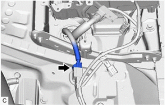| (c) Disengage the grommet and pull out the HV floor under wire from the floor panel hole. |