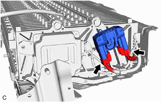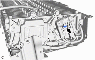| (b) Disconnect the 2 hybrid battery terminal block connectors to remove the hybrid battery terminal block. NOTICE: Insulate the disconnected high-voltage connectors with insulating tape. |