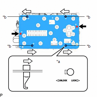 (c) Set the seal packing removal cover on the inverter with converter assembly and secure it by lightly pressing it at the 2 areas shown in the illustration.