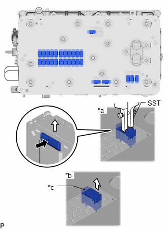 (h) Using SST, release the lock of each vibration dampening connector and raise the 28 vibration dampening connectors until they reach the stopper of the circuit board replacement jig.