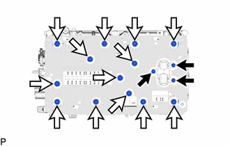 | (b) Install the 2 guide pins by hand at the positions shown in the illustration. NOTICE: Make sure that the guide pins are tightened securely. |