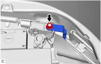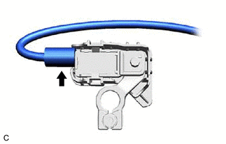 | (b) Remove the nut and disconnect the No.2 frame wire from the battery state sensor assembly. NOTICE: When disconnecting the engine wire, some systems need to be initialized after the engine wire is reconnected. Click here |