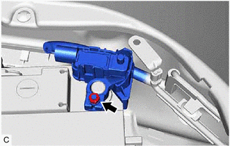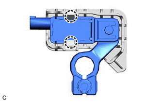 | (e) Disengage the 2 claws to remove the battery state sensor assembly from the battery current sensor holder. |