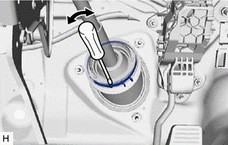 | (a) Using a screwdriver, loosen the clamp as shown in the illustration. |