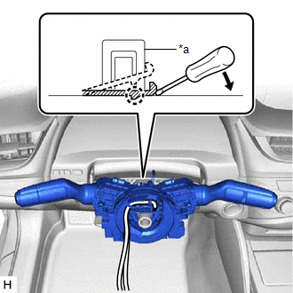 (c) While holding the clamp expanded, raise the claw using a screwdriver to disengage it, and then remove the turn signal switch assembly with spiral cable sub-assembly from the steering column assembly.
