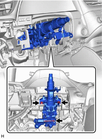 | (b) Remove the bolt, 2 nuts and steering column assembly. |