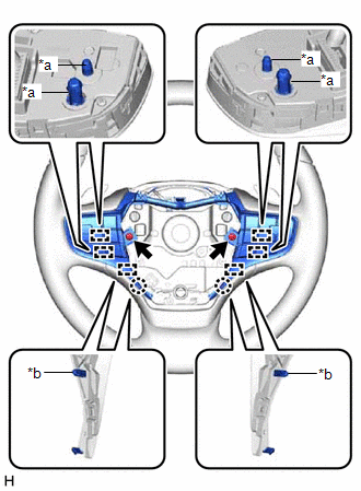 (c) Disengage the 4 pins, 2 guides and 2 claws to remove the steering pad switch assembly.
