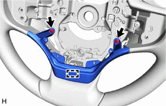 | (a) Remove the 2 screws and disengage the pin to remove the No. 1 steering wheel ornament. |