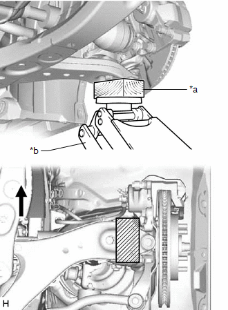 (a) Support the front lower No. 1 suspension arm sub-assembly using a jack and wooden block.
