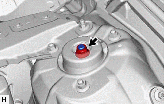| (a) Remove the front shock absorber lock nut cap from the front support to front shock absorber nut. |
