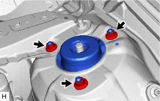 | (c) Remove the 3 nuts and front shock absorber with coil spring. |