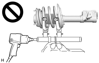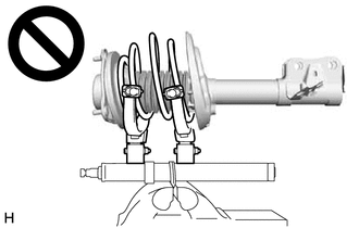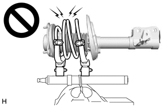 If SST (09727-58100) and SST (09727-58130) are removed without using SST (09727-58010), the action of the rebound spring will cause the shock rod to contract suddenly. Therefore, remove SST (09727-58100) and SST (09727-58130) after securing the shock rod with SST (09727-58010).