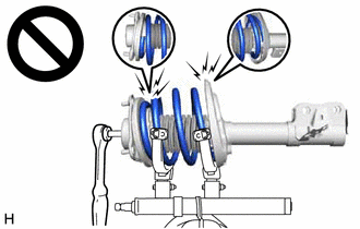 (g) Check that the coil spring has become detached, and then remove the front support to front shock absorber nut.