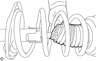 | (1) Disengage the end of the front No. 1 shock absorber dust cover from the claws of the front shock absorber assembly. |
