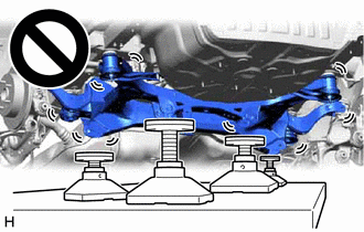 (b) Using an engine lifter and 4 attachments or equivalent tools, support the rear suspension member sub-assembly as shown in the illustration.