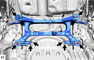 Make sure to place an identification mark on the rear suspension member cushion so that they can be reinstalled to their original positions.