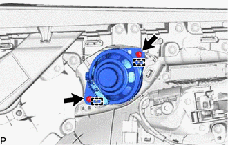 (b) Disengage the 2 guides to remove the front No. 4 speaker assembly.