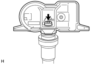 | (h) Using a T10 "TORX" socket wrench, remove the bolt and tire pressure monitor sensor from the tubeless tire valve. |
