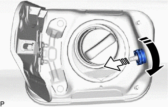 (a) Turn and remove the fuel filler opening lid lock retainer as indicated by the arrows, in the order shown in the illustration.