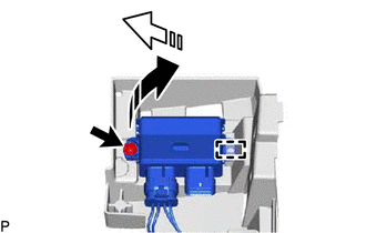 | (a) Disconnect the connector. NOTICE: Do not touch the terminals of the kick door control sensor connector. |