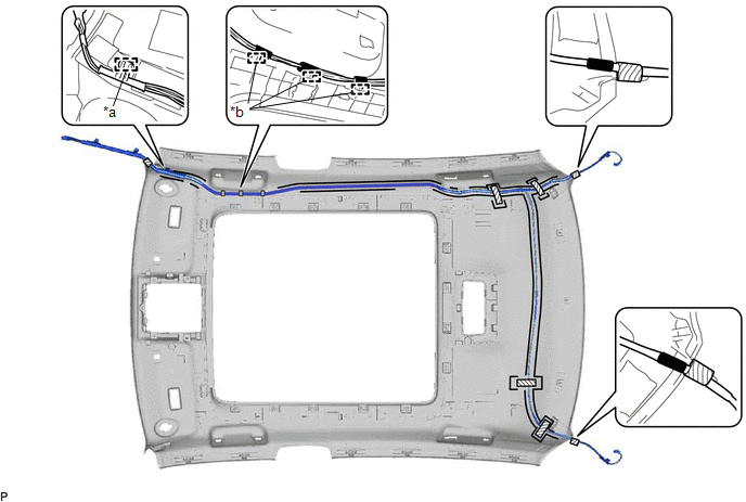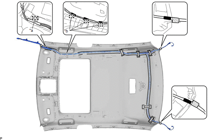 (b) Remove the adhesive tape from the roof headlining assembly.