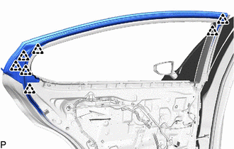 The necessary procedures (adjustment, calibration, initialization, or registration) that must be performed after parts are removed and installed, or replaced during rear door window frame moulding removal/installation are shown below.