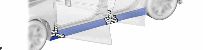 (a) Apply protective tape around the body rocker panel moulding assembly and doors as shown in the illustration.