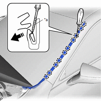 (a) Apply protective tape around the windshield outside moulding as shown in the illustration.
