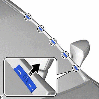 (a) Disengage the 5 claws to remove the 5 No. 1 windshield outside moulding clips as shown in the illustration.