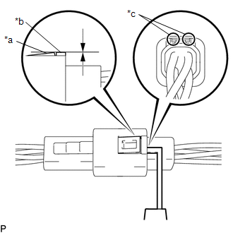 | (9) Insert a 0.9 mm (0.0354 in.) spark plug gap gauge or similar tool into the connector as shown in the illustration. NOTICE: