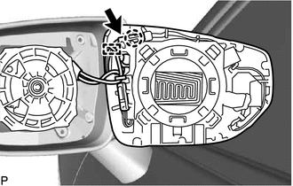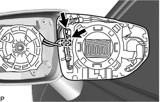(1) Using a moulding remover, disengage the 2 claws on the upper part of the outer mirror as shown in the illustration.