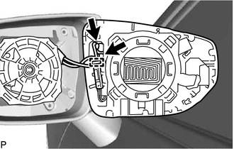 (c) Using a moulding remover, disengage the 2 claws on the lower part of the outer mirror as shown in the illustration.