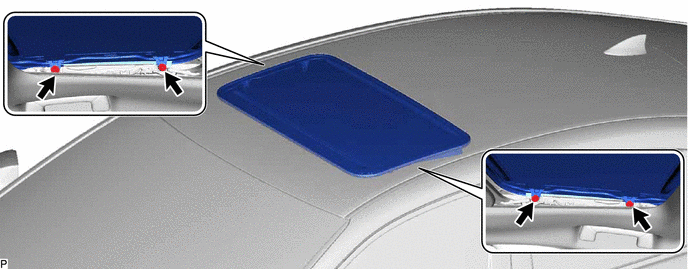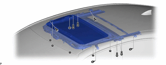 (b) Using a T25 "TORX" socket wrench, remove the 4 screws and sliding roof or removable roof panel sub-assembly.